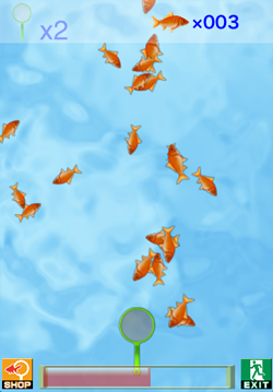 Categoly:Game Enjoy the festival in Japan. [How To Play] 1.Touch a "Poi" which is a special to put it in the water. 2.Drag the "Poi" to move. 3.To scoop the Goldfish, stop touching the screen. 4.You can sell the Goldfishes you're got at "SHOP". 5.Money you can get from selling Goldfishes can be used to buy a new "Poi", to strengther, or to unlock the hidden fish. 6.You'll get one "Poi" per hour in offline, or per 5min in online. 7.In the bottom of the screen, ther is a bar shows you the staying power of the "Poi". 8.In Competition mode, you can compete how many Goldfish you'd get with 5"Poi" in online ranking. |